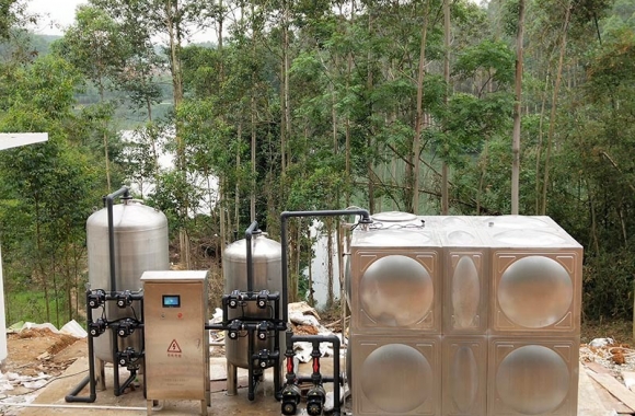 項目名稱:云南柏林村河水凈化工程 設(shè)備名稱:10噸河水壓力式凈水設(shè)備 工藝流程:河水-石英砂過濾器-凈水箱-二氧化氯消毒-加壓泵-高位水塔...