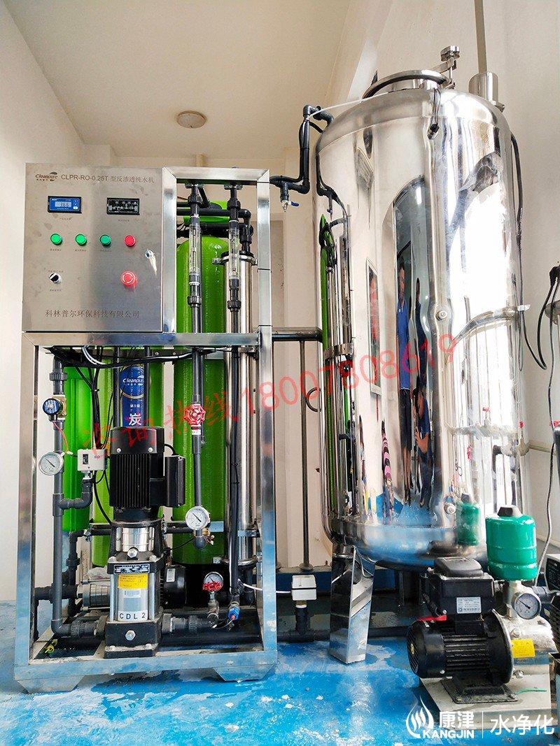 項(xiàng)目名稱:大三元火鍋0.25噸反滲透純凈水設(shè)備 設(shè)備名稱:0.25噸反滲透純凈水設(shè)備 工藝流程:原水箱-原水泵-石英砂過濾器-活性炭過濾器-精密過濾器-反滲透設(shè)備-凈水箱-變頻供水-各點(diǎn)用水...