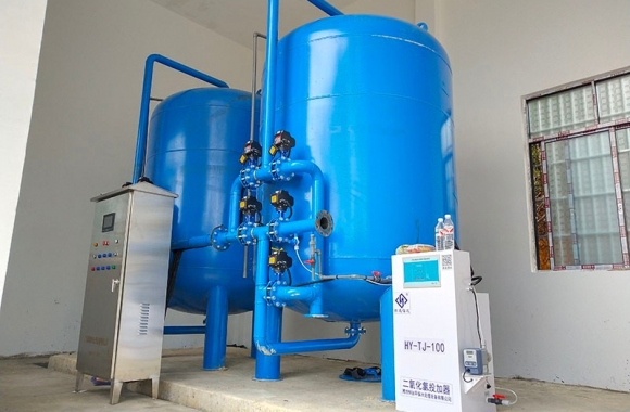 項目名稱:云南三家村河水凈化工程 設(shè)備名稱:30噸壓力式凈水設(shè)備 工藝流程:河水-石英砂過濾器(二級過濾)-二氧化氯消毒...