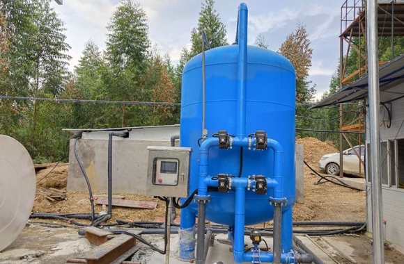 設(shè)備是壓力式的,其原理是當(dāng)原水自上而下通過濾料時(shí),水中懸浮物由于吸附和機(jī)械阻流作用被濾層表面截留下來;當(dāng)水流進(jìn)濾層中間時(shí),由于濾料層中的砂粒排列的更緊密,使水中微粒有更多的機(jī)會(huì)與砂粒碰撞,于是水中凝絮物、懸浮物和砂粒表面相互粘附,水中雜質(zhì)截留在濾料層中,從而得到澄清的水質(zhì)。經(jīng)過濾后的出水懸浮物可在3毫克/升以下。