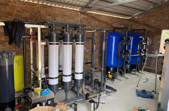 10T/H超濾水處理設(shè)備,業(yè)主是廣西防城港海水養(yǎng)殖公司,產(chǎn)出的凈水用于漁業(yè)養(yǎng)殖使用。超濾水處理設(shè)備過濾精度為0.005到0.01微米范圍內(nèi),可有效去除水中的微粒、膠體、細(xì)菌、熱源及高分子有機(jī)物質(zhì)等。設(shè)備廣泛應(yīng)用于礦泉水制造、食品和醫(yī)藥生產(chǎn)、城市中水會(huì)用等領(lǐng)域。設(shè)備工藝流程。原水來自于大壩,進(jìn)入保溫水箱后經(jīng)高壓泵進(jìn)入預(yù)處理系統(tǒng),根據(jù)業(yè)主水質(zhì)情況,預(yù)處理部分我們推薦的是砂濾和錳砂濾,主要是為了軟化水質(zhì)。預(yù)處理產(chǎn)水接著進(jìn)入精密過濾器,主要是PP棉過濾工作,PP棉更換成本低,一般3個(gè)月左右檢查一次,看情況更換。超濾是一種以篩分為分離原理,以壓力為推動(dòng)力的膜分離過程,所以超濾前需要增加壓力泵。產(chǎn)出的凈水到水箱后由業(yè)主的抽水泵供應(yīng)到用水點(diǎn)。在這里說下,我們看到成套設(shè)備有一個(gè)黃色的桶,它是負(fù)責(zé)給超濾組件加藥清洗用的,及時(shí)清理超濾膜內(nèi)的雜質(zhì),保證膜元件的使用壽命。