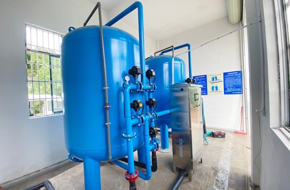 項目名稱:云南銀山縣地下水凈化工程 設(shè)備名稱:30噸壓力式凈水設(shè)備 工藝流程:河水-石英砂過濾器(二級過濾)-二氧化氯消毒...