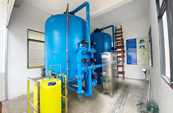 項(xiàng)目名稱:云南曲靖地下水凈化工程 設(shè)備名稱:50噸壓力式凈水設(shè)備 工藝流程:河水-絮凝加藥-石英砂過濾器(二級過濾)-二氧化氯消毒...