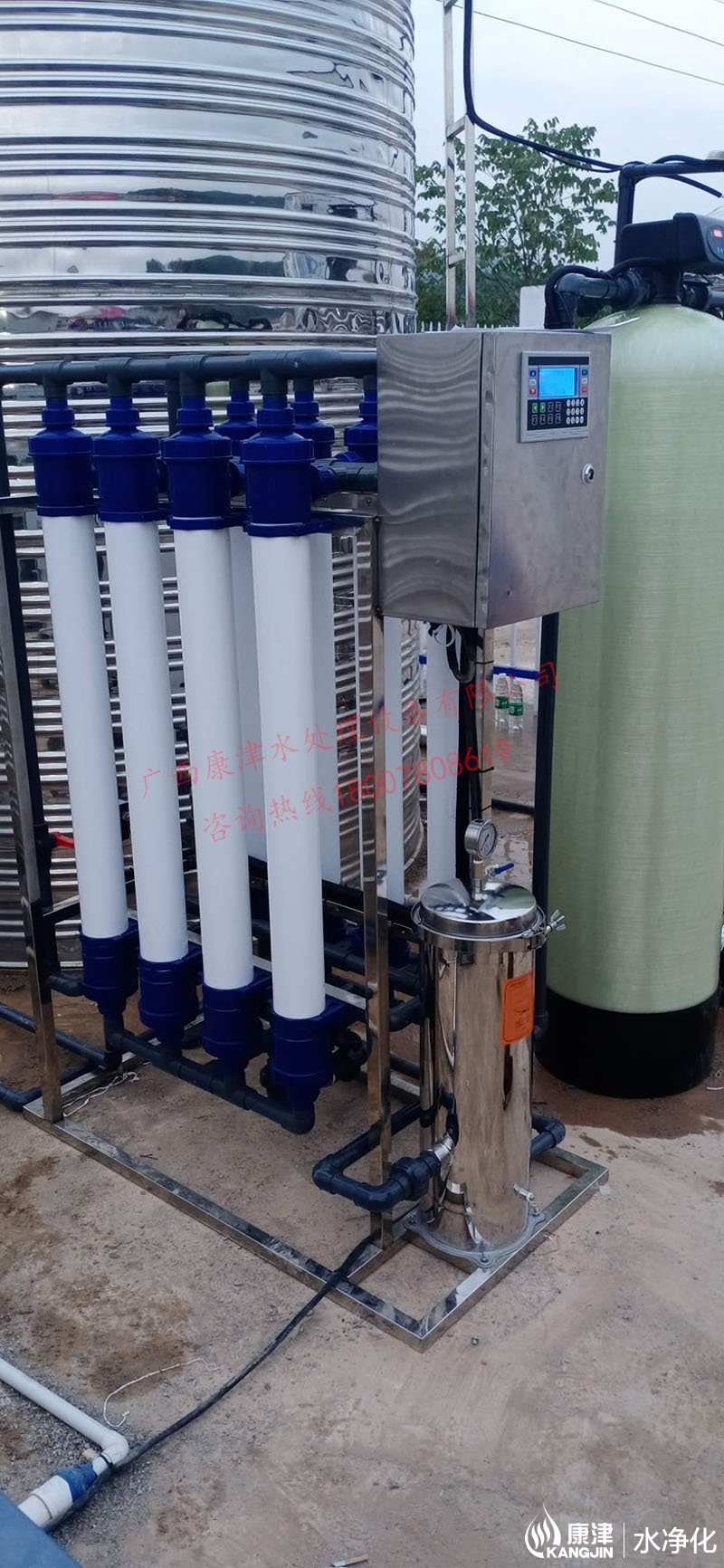 工藝流程:井水-原水箱-原水泵-石英砂過濾器-超濾-凈水箱